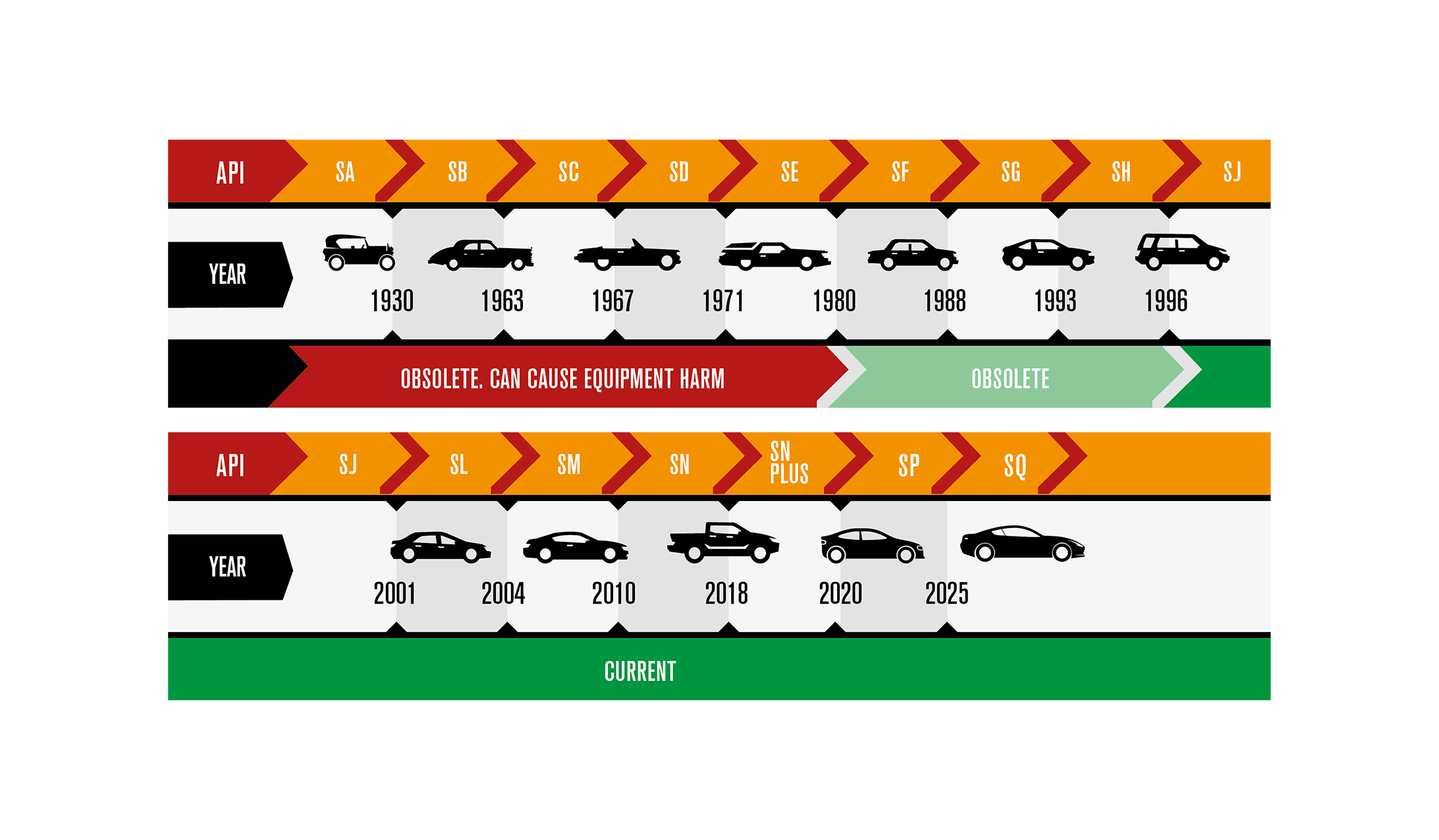 For instance, If you own a car from 1987 requiring an API SF oil and only have oils with API SH and SL available, the oil with SH level would be most suitable. Alternatively, a car from 2003 requiring API SL can safely use oils with specifications SJ, SM, SN, or SQ.